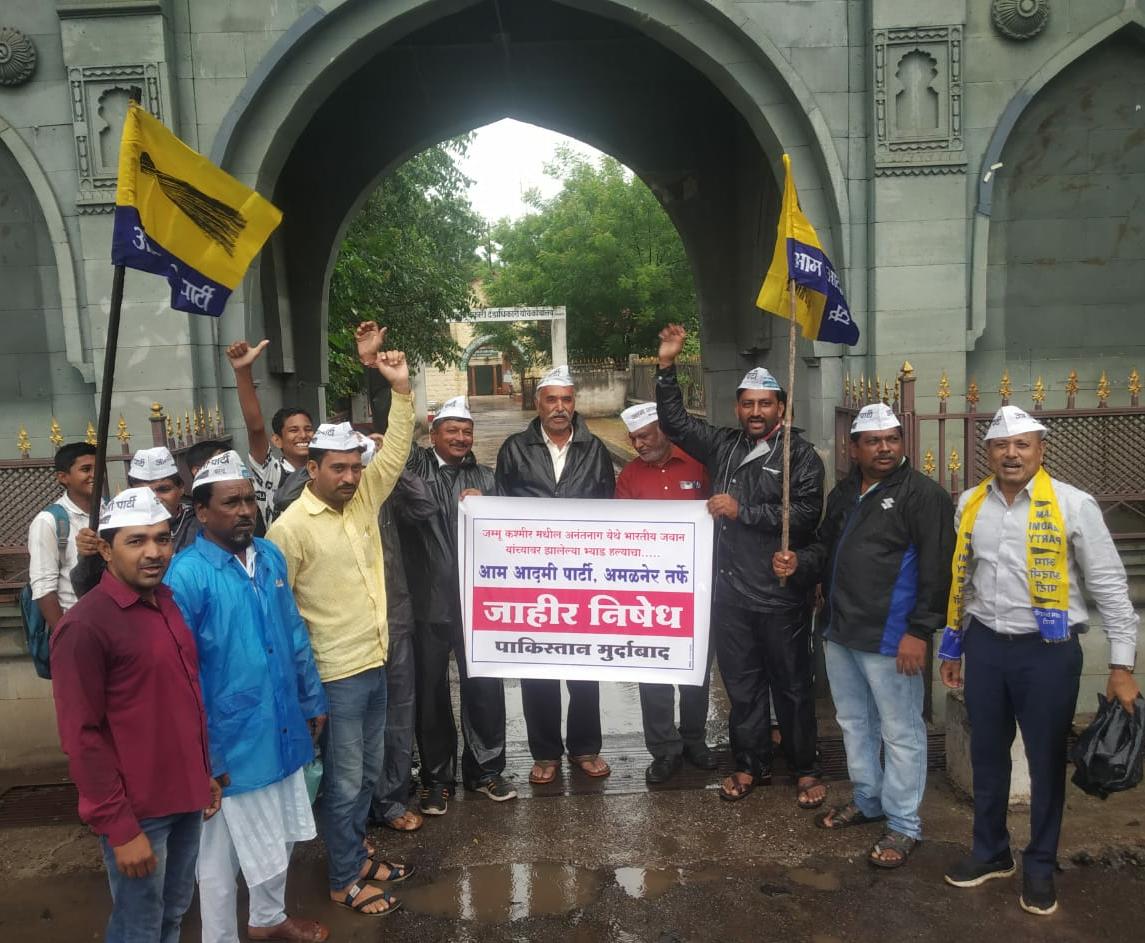 अमळनेर आम आदमी पार्टी आज अमळनेर तहसील कार्यालय जवळ जम्मू कश्मीर अनंतनाग जिल्ह्यातील पाकिस्तानी अतिरेक्याच्या भ्याड हल्ल्यात शहीद झालेले भारतीय सीमा सुरक्षा दलाच्या चार जवानांना आदरांजली वाहण्यात आली या वेळेस पाकिस्तानी दहशतवाद्यांच्या पुतळ्याचे दहन करून निषेध करण्यात आला दोन दिवसापूर्वी काश्मीरमधील अनंत नात या जिल्ह्यात भारताच्या जवानांवर पाकिस्तानी अतिरेक्यांकडून भ्याड हल्ल्या करण्यात आला यामध्ये भारतीय वीर जवान शहीद झाले. केंद्रामध्ये भाजपाचे सरकार नऊ वर्षापासून भाजपाचे सरकार असून वारंवार भारताच्या लष्करी जवानांवर काश्मीरमध्ये जवानांवर असे अतिरेकी हल्ले होत आहे याचा पूर्ण पूर्णपणे बंदोबस्त करण्यात भाजपा सरकार अपयशी ठरत आहे आशा अतिरेकी हल्ल्याचा आम आदमी पार्टी अमळनेरच्या वतीने तीव्र निषेध करण्यात येत आहे तसेच अशा अतिरेक्यांचा कायमस्वरूपी बंदोबस्त करण्यात यावा अशी ही मागणी करण्यात आली आहेआम आदमी पार्टी अमळनेर तर्फे जम्मू काश्मीर अनंतनाग जिल्ह्यातील सीमा सुरक्षा दलाच्या जवानांना भ्याड दहशत हल्ल्यात पाकिस्तानी हल्ल्यात झाल्याबद्दल जाहीर निषेध याप्रसंगी उपस्थित. जिल्हा उपाध्यक्ष प्रा.गणेश पवार सर.जिल्हा संघटन मंत्री नामदेव पाटील.तालुकाध्यक्ष स्वप्निल नवल पाटील. शहराध्यक्ष.नंदु जगन्नाथ पाटील.तालुका.सचिव रामकृष्ण देवरे सर,सहसचिव महेंद्र नाना साळुंखे,ता.अल्पसंख्खाक अध्यक्ष सलिम खान, मिडिया प्रमुख उंमाकात ठाकूर, श्री.रविद्र पाटील (को को कोला सर) युवा तालुकाध्यक्ष दिनेश पाटील खर्दे, डॉ.रूपेश संचेती, राजेंद्र भाऊराव पाटील, संजीव पाटील,देविदास संभाजी पाटील,रियाज बागवान.प्रा.प्रतिभा पाटील, मनिषा पाटील,भाविका पाटील.मुकेश राजपूत आदी कार्यकर्ता मोठ्या संख्येने उपस्थित होते