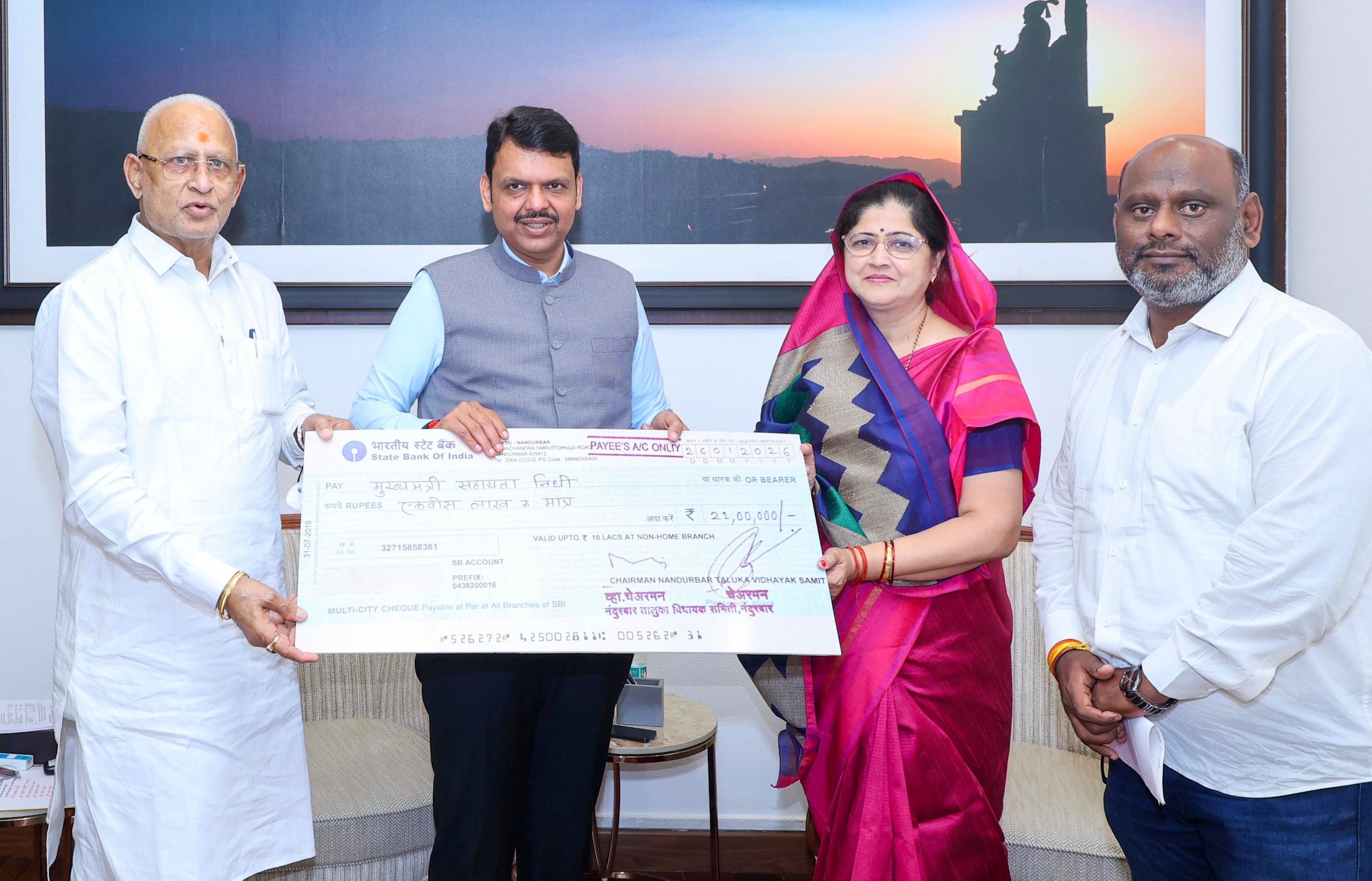 या वेळी मुख्यमंत्री देवेंद्र फडणवीस यांनी नंदुरबार तालुका विधायक समिती तसेच आमदार चंद्रकांत रघुवंशी आणि नगराध्यक्षा रत्ना रघुवंशी यांचे विशेष आभार मानले. समाजातील दुर्बल घटकांसाठी दिलेली ही मदत संवेदनशीलतेचे व सामाजिक जाणिवेचे उत्कृष्ट उदाहरण असल्याचे त्यांनी यावेळी नमूद केले. नंदुरबार जिल्ह्याच्या वतीने मुख्यमंत्री सहाय्यता निधीसाठी देण्यात आलेली ही आर्थिक मदत सामाजिक उत्तरदायित्व अधोरेखित करणारी असून, भविष्यातही अशाच प्रकारे जनहिताचे उपक्रम राबवले जातील, असा विश्वास यावेळी व्यक्त करण्यात आला.