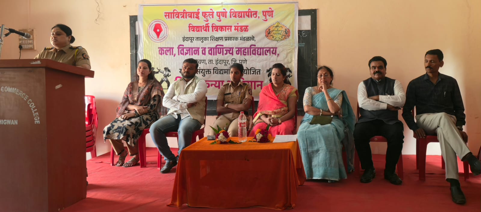 छायाचित्र ओळी- भिगवण – येथील कला विज्ञान व वाणिज्य महाविदयालयांमध्ये आयोजित निर्भय कन्या अभियांना कार्यक्रमामध्ये बोलताना डॉ. पदमा खऱड…