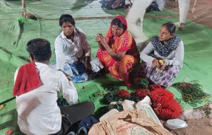 हिरवा चुडा (बांगड्या) भरून देताना सेवेकरी
